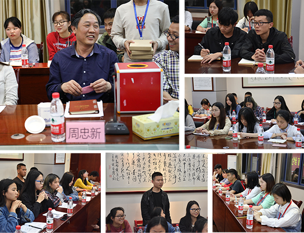 随后,周忠新与学生代表进行了面对面交流。针对18级旅游管理班同学提出的有些学生对待身边的人态度冷漠、不够有人情味的问题。周忠新指出,每个人都要有一颗感恩的心,没有感恩的心是成不了才的。同学们应该感恩拥有的一切,孝顺父母、友爱同学,与人为善、成人之美、助人为乐。针对17级计算机网络1班的同学提出希望开展更有意义的春秋游活动的问题。周忠新建议学工处可以组织同学们开展拓展训练,培养团结协作精神、提升集体荣誉感。针对商务信息技术学院的同学提出希望有机会参观湘商文化院的问题,周忠新当即表态,要求相关部门安排参观。针对18级商务英语班同学提出的较多同学缺乏自主学习能力的问题。周忠新指出,读书能够使人保持思想的活力,一定要经常思考“为什么读书”“读什么书”“怎么读书”的问题,激发自己内心对于知识的渴望,形成强大的自我驱动。他还给同学们推荐了《习近平的七年知青岁月》这本书,希望同学们学习习近平总书记在艰难困苦中努力创造条件、坚持刻苦学习的精神,通过“独上高楼,望尽天涯路”的积累、“衣带渐宽终不悔,为伊消得人憔悴”的坚持,最终到达“众里寻他千百度,蓦然回首,那人却在灯火阑珊处”的豁然贯通的学习境界。