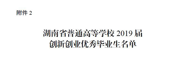 本网讯 (王振亚)日前,湖南省教育厅专门下发文件隆重表彰2019 届优秀毕业生和创新创业优秀毕业生,我校共有147名毕业生受表彰,其中优秀毕业生(含退伍的优秀毕业生16名)135名,创新创业优秀毕业生12名。