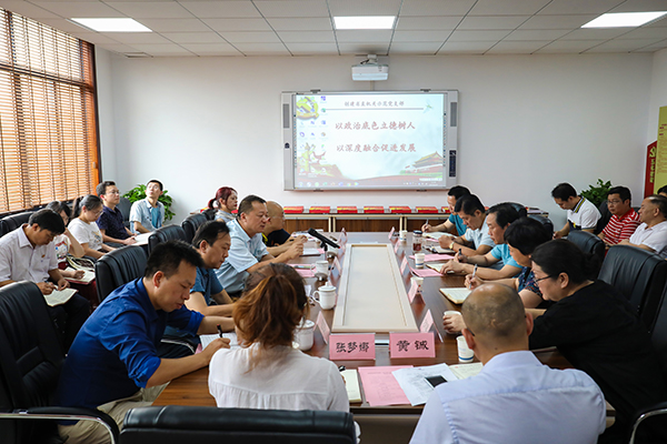 曾震亚以《不忘为农服务初心 争创双一流院校 》为题,为参会的党员同志们讲了一堂生动的党课。他指出,党建工作是党委(党组)的主体责任,党委(党组)书记是第一责任人,抓党建是最大的政绩,党建工作是首位政治工作。省社体制很特殊,有机关、企业、事业单位还有主管社团,在省直部门中比较特殊。要充分发挥省社体制优势,必须坚守为农服务初心,以政治建设为统领,深入开展“不忘初心、牢记使命”主题教育,推动加强党的建设、着力发挥供销合作社为农服务“国家队”作用。他强调,供销合作社所属的职业院校,是培养“懂农业 爱农村 爱农民”骨干人才的重要基地,是推动供销合作社服务“三农”的重要力量。当前,要着眼“创建双一流 建好卓越院校”的目标,深入开展“不忘初心、牢记使命”主题教育活动,贯彻落实主题教育活动要求,努力提升创建水平,对标习近平总书记在中央主题教育工作会上提出的四点要求,做到“守初心、担使命、找差距、抓落实”,达到“理论学习有收获,思想政治受洗礼,干事创业敢担当,为民服务解难题,清正廉洁作表率”。要进一步把握中央高度重视职业教育、全面实施乡村振兴战略的历史性机遇,进一步明确“双一流”职业院校建设目标,牢记培养乡村振兴高端人才“黄埔军校”初心使命,主动融入到供销改革、乡村振兴事业中来。