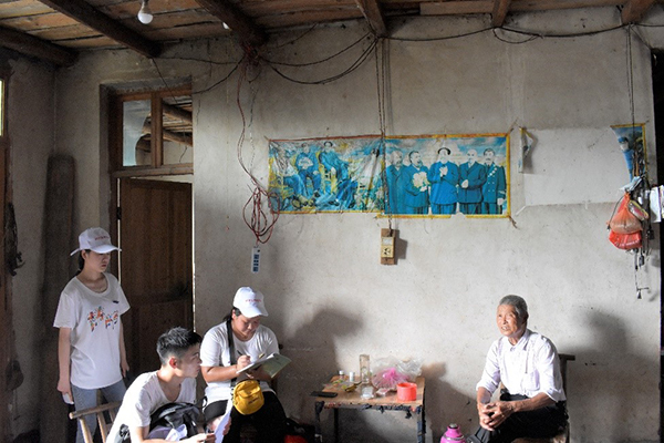 “经贸实践服务团”通过与泸溪县扶贫办对接,在解放岩乡开展贫困家庭访谈、宣传扶贫政策和农村合作医疗政策、慰问空巢老人和关爱留守儿童等“精准扶贫”调研活动。