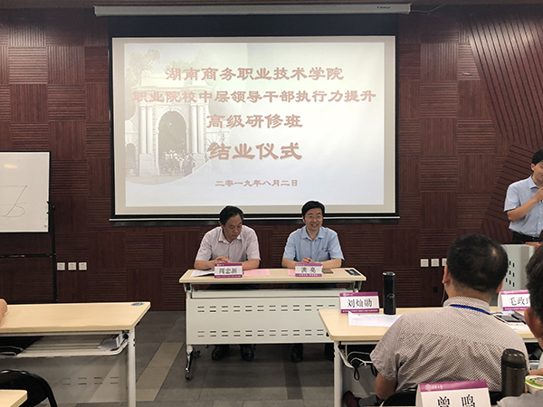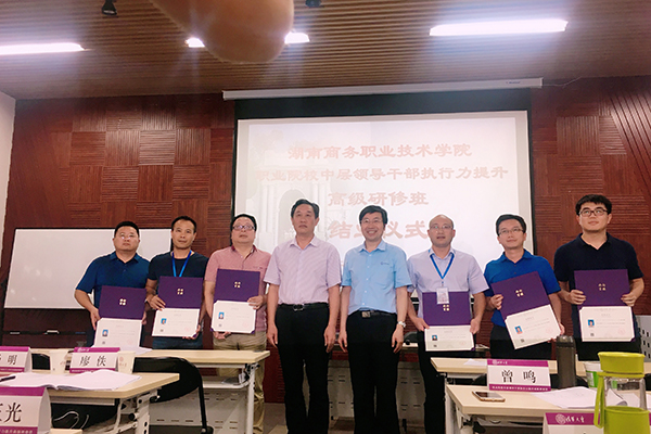 周忠新首先对清华大学基础工业训练中心的精心组织与安排表示感谢,对大家的顺利结业表示祝贺。他说,培训有结束,但工作没有终点,大家要将此次学习所获融会贯通,运用到今后的工作中,争取取得事半功倍的效果。周忠新对全体学员提出了三点要求,一是牢记初心使命,坚定信仰信念信心。当前,全国正在开展“不忘初心,牢记使命”主题教育活动,根据省委统一部署,我校也将于下月启动。习近平总书记说,中国共产党人的初心和使命,就是为中国人民谋幸福,为中华民族谋复兴。我认为,我校干部的使命就是为教职员工谋幸福,为学校建设发展做贡献。心中有信仰,脚下才有力量,今年我校提出了争创中国特色高水平高职学校和高水平专业群,以及创建应用型本科的目标,作为学校中流砥柱的干部,必须仰望星空、脚踏实地,怀揣信仰,坚定信念、充满信心,为实现既定目标,实现中国梦商务梦而不懈奋斗。二是牢记身份天职,坚持负责守责尽责。我们既是学校干部,也是人民教师,以教书育人为天职,被誉为“人类灵魂的工程师”,培养社会主义接班人是我们的责任,这就要求我们既要牢记的“四有”好干部要求,也要遵从“四有”好老师要求。坚持把“立德树人”作为根本任务,立足岗位作奉献,用心服务出实效,学习清华“行胜于言”的校风,努力培养出更多的高素质技术技能型湘商人才。三是牢记忠诚担当,扎实做人做官做事。湖南商务职院的干部,要忠诚于党,忠诚学校,忠诚师生,要能担当,敢担当,会担当。做人,要以德为先,以诚为根,以善为贵,拥有崇高的师德,端正的品德,高尚的道德,为做好育人之人而努力;做官,要以师生为本,以正气为先,以纪律为则,一心为民,秉公办事,即对自己负责,也对师生负责,同时处理好工作与生活的关系,感情与原则的关系,权力与责任的关系。做事,要以谋为基,以实为重,以智为要,高站位虑事,高水平谋事,高效率办事,高风格处事,真正推动学校的建设发展。