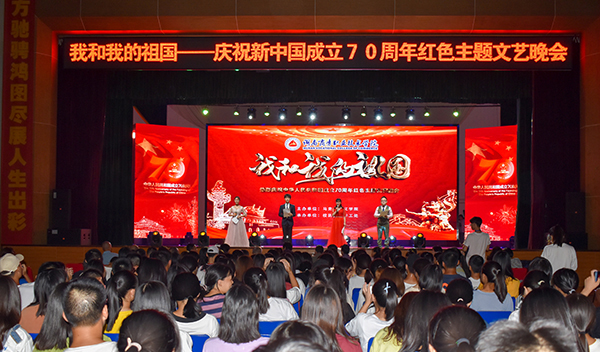 据了解,整场晚会分为“回眸初心”、“筚路蓝缕”、“沐浴春风”、“时代强音”四个篇章,涵盖了歌曲、舞蹈、快板、话剧、朗诵、情景表演等多种表演形式,融合了布景、灯光、氛围营造等艺术表现力,集中呈现了传承红色基因、艰苦奋斗创业、沐浴改革春风、逐梦新中国等主题。此次晚会不仅是一场献礼新中国成立70周年的红色主题晚会,也是我校开展“不忘初心、牢记使命”主题教育的重要内容之一。