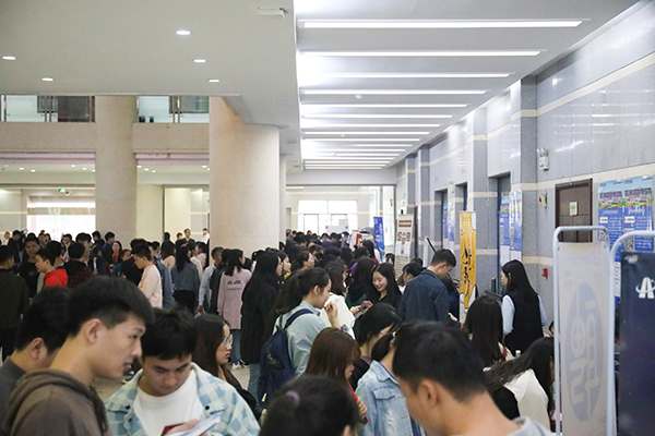 ▲10月22日下午,长沙市岳麓区就业服务进校园活动暨我校2020届毕业生首场校园招聘会在办公楼一楼大厅隆重举行。