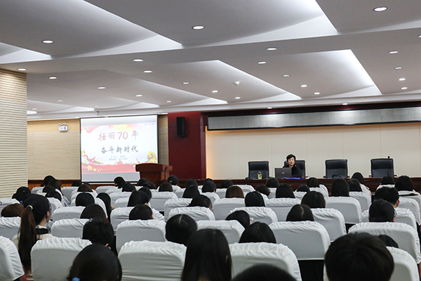 70年披荆斩棘,70年风雨兼程。李定珍从“艰辛探索,铸就辉煌历程”、“砥砺奋进,谱写壮丽史诗”、“深刻启示,引领前行之路”三个篇章展开详细讲解,带领同学们深情回顾了70年来新中国的光辉历程和创造的伟大奇迹,总结了新中国发展取得巨大成绩的经验和启示。她讲到,实行改革开放是中国一个伟大的决策,是发展中国特色社会主义,实现中华民族伟大复兴的必经之路,中国人民以一往无前的精神和波澜壮阔的创新实践,推动了中国特色社会主义不断丰富发展并进入新时代。
