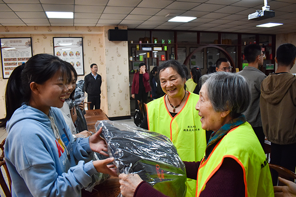 ▲孟妈妈团队给学生递送冬衣。