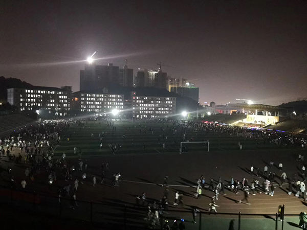 本网讯(记者 胡浪 谢娜)12月2日19时,由体育部主办,校团学生会体育部、社团联合会承办的“荧光夜跑,耀动未来”主题夜跑活动在田径场拉开序幕。活动吸引了18级、19级五千余人参加。