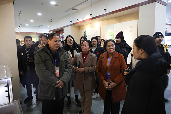 本网讯(记者 许文颖 冷梅)12月23日,由老挝教育与体育部学生事务司司长Vongphachanh VILAYHOM(翁帕查恩·卫勒弘)、老挝AB学院院长Phonethip BAVIKHAM(福提)等组成的学习团赴湖南省茶叶集团—湘茶高科技园进行参观学习。校长李定珍、湘茶学院院长易能及相关负责人员陪同出席活动。