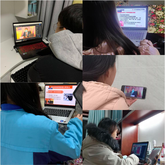 李定珍与师生一道共同回顾了2019年全校在政治思想引领、人才培养质量、人才强校战略、行业服务能力、民生工程建设等领域取得的卓越成效,并通报了学校疫情防控工作情况。在党中央、省委、省供销社、省教育厅的坚强领导下,学校采取了“快”“准”“实”的防控举措。截止目前,全校1.1万余师生员工及家属无一例确诊及疑似病例。针对学生关切的返校时间及在线学习等问题,李定珍指出,当前疫情防控正处在最吃紧的关键阶段,对此我们要有足够的思想工作准备,继续毫不放松抓紧抓实抓细疫情防控工作和教育教学工作,牢牢守住校园防线,扎实将“严防扩散、严防爆发、确保一方净土、确保生命安全”落到实处。同时,学校将在3年推出100门校级及以上在线课程的基础上,再推100门优质在线课程,实现国家级在线课程零的突破。深化教学方法改革,打造更多优质在线教学课程,将线上线上有机结合的教学形式常态化。李定珍表示,疫情不结束,学校坚决不开学,开学时将至少提前一周告知同学们。目前,全体教职员工已进入工作状态,有序推进各项工作,全力做好随时返校开学准备。