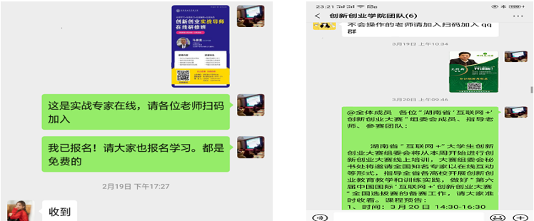 由于在疫情防控期间,不能集中组织相关活动,该院团队成员当即将互联网+创新创业大赛“搬上线”。一是参加了第六届中国“互联网+”大学生创新创业大赛线上辅导。师生全程聆听了张强、马德富、陈静、周洛宏、蒋楠等14位国家级大学生创新创业导师的专题讲座,对历届“互联网+”大赛优秀项目的特点与优秀项目有了新的认识和解读。二是积极参与中国高校众创空间联盟和湖南省就业创业指导中心开展的“线上双创行动”。充分利用中国高校众创空间联盟服务平台移动端和湖南省就业创业指导中心的平台资源,实现创新创业工作数字化升级和教育资源共享,对重点项目和团队人员开展数字化管理和服务工作,引导各项目团队积极利用平台进行在线学习,开展线上帮扶活动。三是要求学生结合自身经历和所处环境,就生活中存在的创业机会进行分析,为创业实践提供可能。