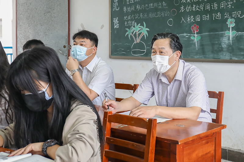 “学生精神面貌不错,精力集中,思维活跃,互动积极……”在实训楼306教室内,听完课后的李定珍正与授课老师交流听课感受,对授课老师认真的教学态度、灵活的教学方法和良好的课堂氛围给予了充分肯定。特殊时期,李定珍还不忘叮嘱师生注意佩戴好口罩,保持适当安全距离,细致做好个人防护措施。