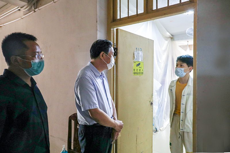 在校医务室,周忠新看望了正在治疗的同学和在一线工作的医务工作者,详细询问了同学们的症状及治疗情况。得知不少学生因为贪凉感冒,周忠新嘱咐随行工作人员,要进一步加强对学生的日常健康提醒和管理,密切监测学生健康状态,出现紧急情况要严格按照应急处置标准和流程处置,严禁在思想上麻痹和大意,在行动上松懈和打折扣。