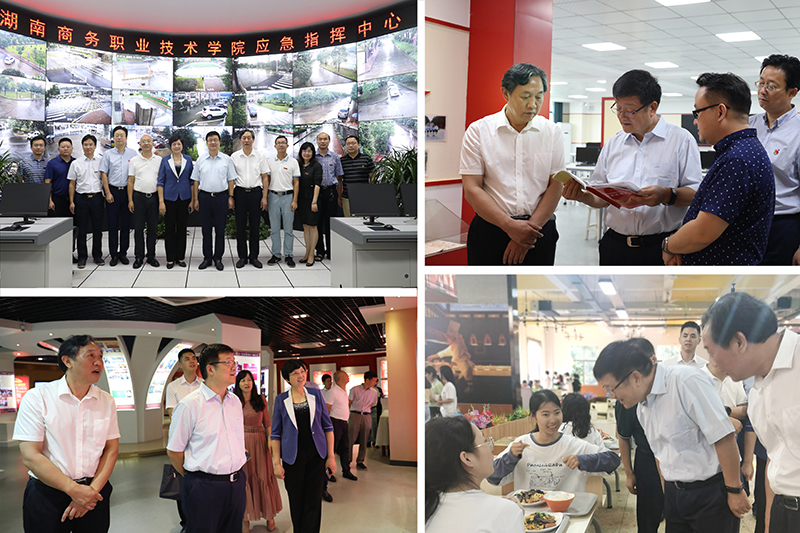 调研期间,刘湘凌一行还实地走访了旅管学院教工党支部、湘商文化院、思政实践教学中心、茶学院茶文化室等,肯定了思政践教学中心对讲好湖南红色故事的探索实践。在学生食堂,刘湘凌一行查看了学生饭菜质量、就餐环境,并与学生亲切交流,倾听他们的用餐体验,嘱咐学院全面做好师生食堂食品安全和学生后勤服务工作。