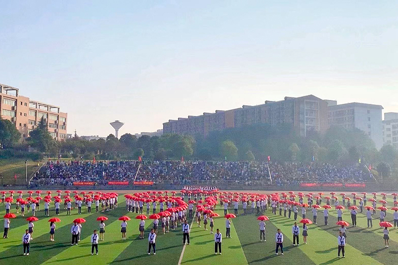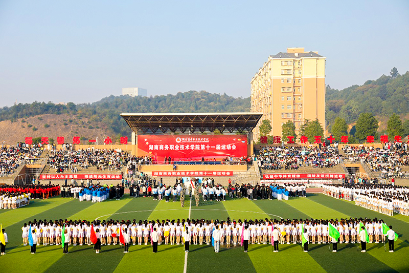 “湖南商务技术职业学院第十一届校运会正式开幕!”党委书记周忠新迎着朝阳庄重宣布。