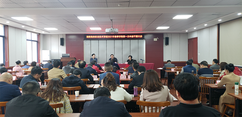 2021年2月24日上午,我院在J2-201召开2021年春季学期第一次中层干部会议,系统研判了当前学院改革发展面临的机遇与挑战,全面部署了2021年度学院工作中心工作,并就新学期开学准备、疫情常态防控、现代商务综合实训中心建设等近期主要工作进行了强调安排。全体院领导、中层干部参加了会议。会议由党委副书记廖志刚主持。