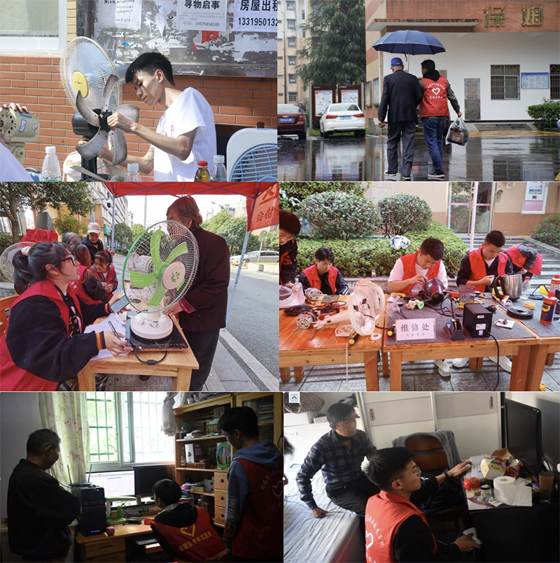 志愿者们从校园走进社区,每次义务维修服务点一搭起来,就会吸引不少人驻足询问。活动中,大家纷纷带来有故障的电风扇、水壶、插座等家电前来维修。志愿者们耐心排查故障,认真检查修理,让一件件废旧家电都“重获新生”。除定点维修外,针对独居老人生活不便,维修队志愿者还将温情送进家中,上门帮助其维修电器、调试网络,真真切切为老人们解决实际困难。