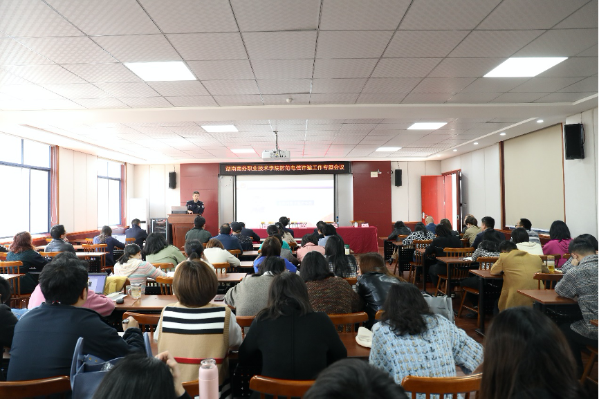 遭遇电信诈骗怎么办?3月25日,湖南商务职业技术学院邀请长沙市公安局岳麓分局天顶派出所副所长黄闽进校开展防范电信诈骗专题讲座,警察蜀黍现身为师生讲解不法分子常用的诈骗手法和作案特点,现场传授如何“不入套”。