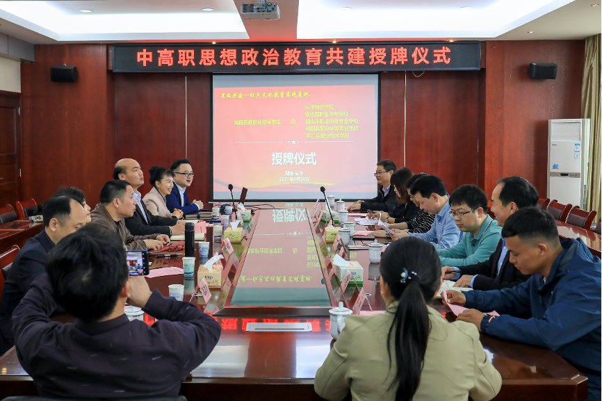 3月30日,湖南商务职业技术学院携手长沙财经学校、安化县职业中专学校、祁阳县职业中专学校、韶山市职业中专学校、平江县职业技术学校5所中等职业技术学院举行红色文化教育实践基地建设授牌仪式,他们将围绕红色文化教育培训基地共建、党员干部培训、德育教师培训、学生德育实践活动等展开合作,合力打造红色文化“教育链”。
