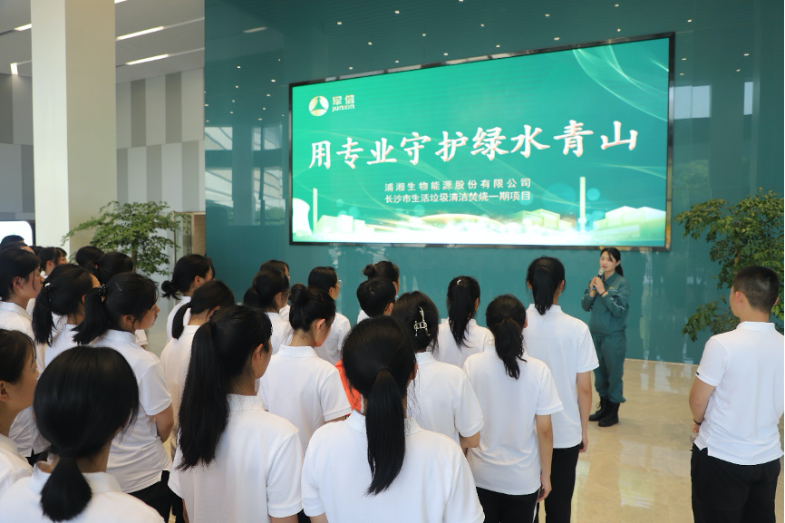 最后,一行人来到了长沙市生活垃圾深度综合处理(清洁焚烧)项目现场,经讲解员介绍,长沙市所有生活垃圾都被运往这里进行处理。该项目位于望城区桥驿镇固废处理场西侧,传统的填埋方式占用大量土地资源,无法实现垃圾的资源化利用,这个项目可以实现垃圾无害化、减量化和资源化,采用成熟的机械式炉排炉工艺,主要工艺系统由行业内具有丰富经验的日立造船株式会社负责设计,生活垃圾经焚烧后体积可减少90%左右,建成后上网电量将达4.14亿度/年。
