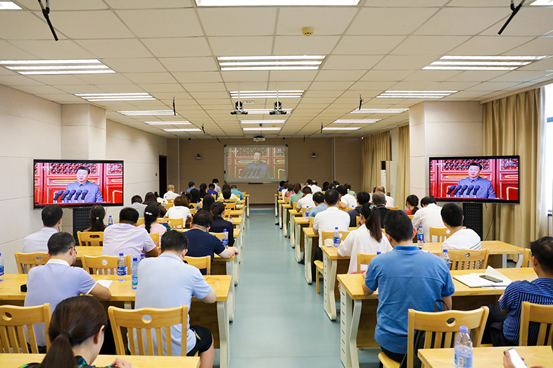 早上7时30分,全体院领导、中层干部、党总支书记、支部书记早早等候在六楼录播室,等待收看庆祝中国共产党成立100周年大会。此次收听收看涵盖了全校24个基层党组织,全院7000余名学生。大家纷纷通过网络、电视、手机等渠道收听收看,深入学习贯彻习近平总书记重要讲话精神,共同回顾了中国共产党的百年历程,见证了新中国在中国共产党领导下取得的举世瞩目成就。