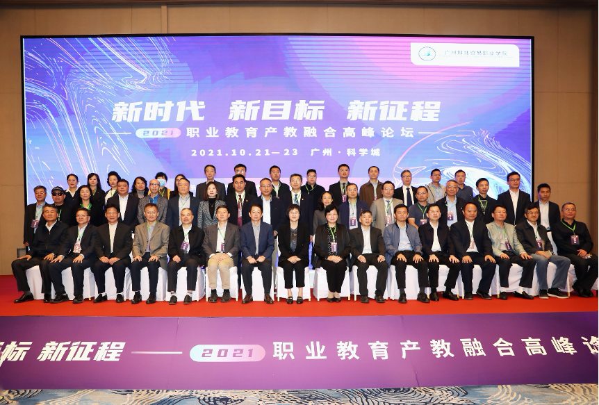 10月22日,由全国职业院校乡村振兴协作联盟主办,广州科技贸易职业学院承办,以“新时代 新目标 新征程”为主题的2021职业教育产教融合高峰论坛在广州开发区成功举办。来自全国各地的21家高职院校校长,职业教育、产教融合专家学者、企业代表等200余人参加活动。