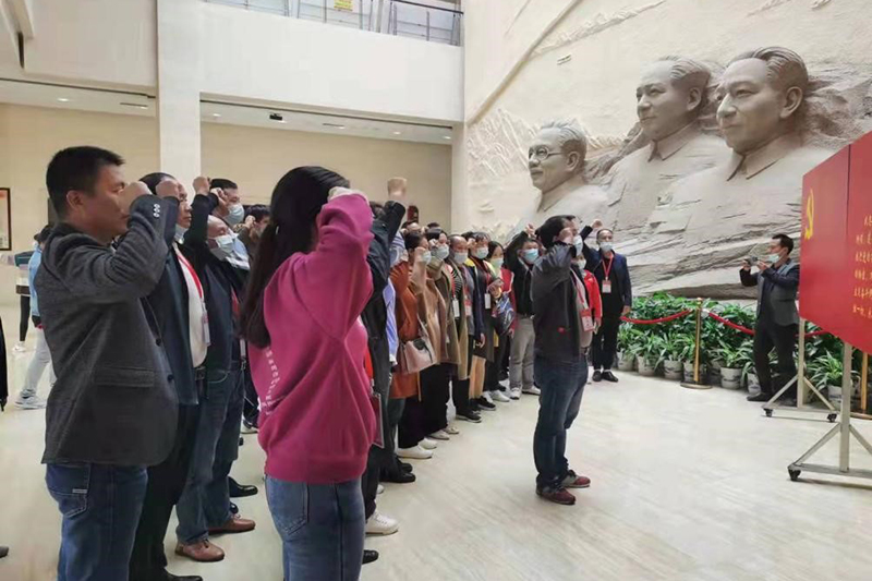 在“敢教日月换新天”雕塑前,全体学员重温入党誓词,一句句铿锵有力的誓词,在大厅久久萦绕,砥砺着乡村致富带头人振兴乡村、实现共同富裕的初心和使命。