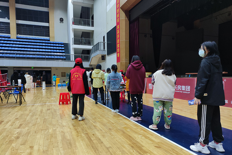成立专员专班、布置场地标识、调度防疫物资、开通多条核酸检测通道......湖南商务职院作为青山社区最大的核酸采样集中点,从昨天晚上接到上级指令起,便第一时间启动应急响应预案,成立工作专班,多部门联动,确保全员核酸检测工作有序开展。为避免人员聚集带来的隐患,学院组织了40余名志愿者与社区服务中心的30余名志愿者一道分散在现场各环节,督促师生严格落实一米排队距离、戴口罩、查验健康码等防范举措,指挥师生按照学校规定的检测时间,分批错峰到达现场完成采集工作。整个过程井然有序,检测流程顺畅、快速、高效。