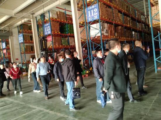 下午,一行人在云通物流人力资源部经理刘姝等工作人员的带领下来到云通物流园区,先后参观了库区内生鲜农产库、中央厨房、管控系统中心等,详细了解云通物流的发展情况和运行状况,并在现场观看了农产库中水果蔬菜等农产品和民生物资的运输情况。