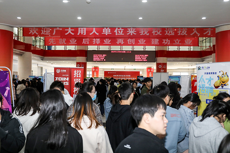 11月9日下午,湖南商务职业技术学院办公楼一楼大厅人头攒动、热闹非凡。“精准求职 ‘职’在必得”——2022届毕业生就业服务月首场校园供需见面会隆重开启……