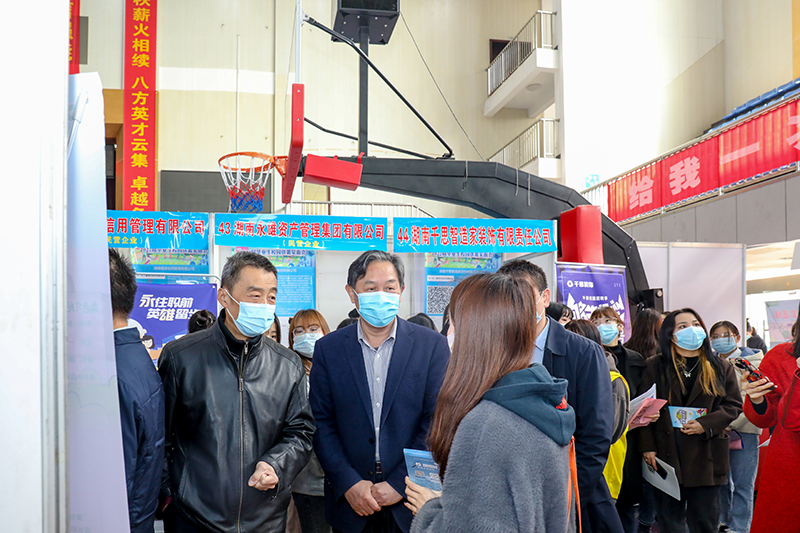 湖南省教育厅学生处颜慧琳副处长、省就业中心夏学军副主任、事业发展部章小波部长以及学院党委书记周忠新、院长李定珍、副院长禹明华等院领导来到招聘会现场指导工作,与招聘单位负责人及应聘学生沟通交流,听取用人单位的意见建议,了解毕业生的就业诉求,为学生的就业精准做好服务。(通讯员易婧 王恩琴 陈钰 邓欣雨 何雨妍)