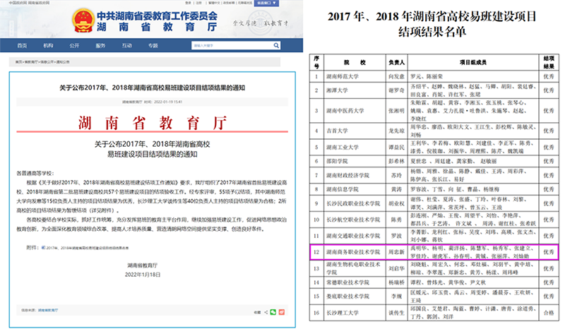 近日,湖南省教育厅下发《关于公布2017年、2018年湖南省高校易班建设项目结项结果的通知》,我院党委书记周忠新主持的易班建设项目获优秀等级结项。