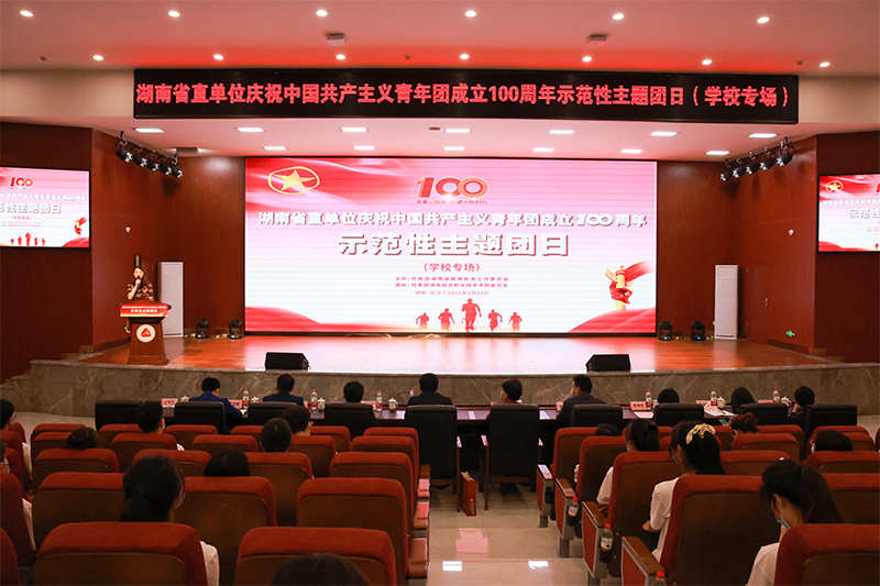 为激励广大团员青年以青春奋进之姿喜迎党的二十大、庆祝建团百年,引领团员青年坚定跟党走、建功新时代,5月13日上午,湖南省直单位庆祝中国共产主义青年团成立100周年示范性主题团日(学校专场)活动在湖南商务职业技术学院举行。此次活动共设立机关、企业、高校三个分会场,同步向省直各单位团组织直播活动现场情况,线上线下近130万团员青年参与。活动由湖南商务职院团委副书记罗佳玲主持。