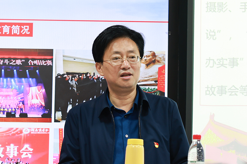 廖志刚从“党史学习教育”回顾、弘扬伟大建党精神、争做新时代的合格党员、喜迎二十大永远跟党走,这四个部分进行深入解读,带领同学们共同感受中国共产党一百年奋斗历程所取得的辉煌成就。他指出,实现中华民族伟大复兴是百年辉煌党史的主题,是理解中国共产党人初心使命的枢纽。在不同历史时期,中国共产党人经过艰苦奋斗,形成了不同的崇高革命精神,这些精神是我们党和中华民族的宝贵精神财富,也是激励全体人民不断前进的重要精神力量。