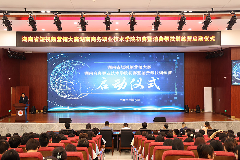 5月23日上午,湖南省短视频营销大赛暨消费帮扶营销训练营在湖南商务职业技术学院正式启动。湖南商务职业技术学院院长李定珍,湖南兴元科技股份有限公司董事长张福兴,长沙统一企业有限公司营销部长吴孟生,杭州娃哈哈集团有限公司省级商超经理盛旺,湖南中教睿兴科技有限公司总经理吴家强,湖南无接触智慧科技有限公司董事长夏卫平,湖南商务职业技术学院经贸学院副院长黄慧化,湖南中教睿兴科技有限公司运营总监张尧等企业领导以及经贸学院教师代表、全体学生参加活动。活动由经贸学院院长陈学忠主持。