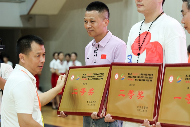省直工会副主席艾超越为获得事业组二等奖代表队颁奖