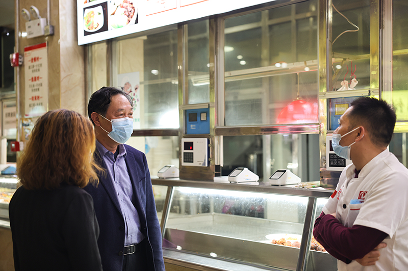 周忠新一行先后深入教学楼、食堂、阳光服务大厅、医务室、学生宿舍、十八栋隔离点等重要场所,对食品安全、校内医疗设备、防疫物资储备等进行了细致检查,对发现的问题进行现场调度,要求相关责任部门尽快整改到位,及时消除安全隐患。当前疫情防控形势严峻,周忠新要求各辅导员密切掌握学生的思想动态,及时发现,及时安抚,做到身心双管齐下,促进学生的全面发展。