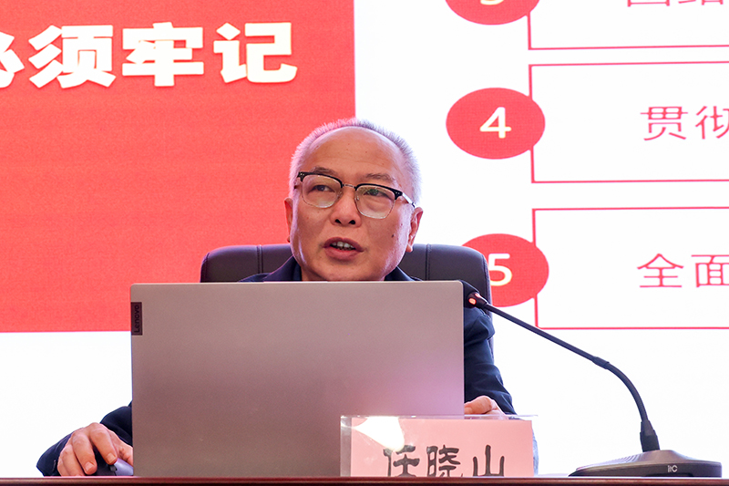 报告会上,任晓山聚焦党的二十大的主题、主要成果,过去5年的工作和新时代10年的伟大变革,马克思主义中国化时代化,中国式现代化,全面建设社会主义现代化国家的目标任务,坚持党的全面领导和全面从严治党,应对风险挑战等七个方面,对党的二十大精神进行了系统阐释和深入解读,指出当代中国青年生逢其时,施展才干的舞台无比广阔,实现梦想的前景无比光明。广大师生要认真学习领会党的二十大精神,紧密团结在以习近平同志为核心的党中央周围,高举中国特色社会主义伟大旗帜,全面贯彻习近平新时代中国特色社会主义思想,牢记空谈误国、实干兴邦,坚定信心、同心同德,埋头苦干、奋勇前进,为全面建设社会主义现代化国家、全面推进中华民族伟大复兴而团结奋斗。