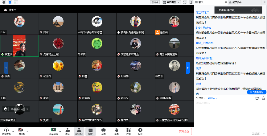 本次会议以线上线下相结合的方式进行,来自各成员单位代表近100余人通过视频形式参加了会议。会议还审议了《湖南现代商务职业教育集团工作报告》《湖南现代商务职业教育集团章程(修订案)》,对17家校企合作先进单位、9个校企合作优秀项目、12位校企合作先进个人进行表彰。湖南顺君商业管理有限公司、长沙市爱巴森网络科技有限公司、湖南省唐羽茶业有限公司、湖南兴元科技股份有限公司4家成员单位围绕校企合作、产教融合进行了经验分享。