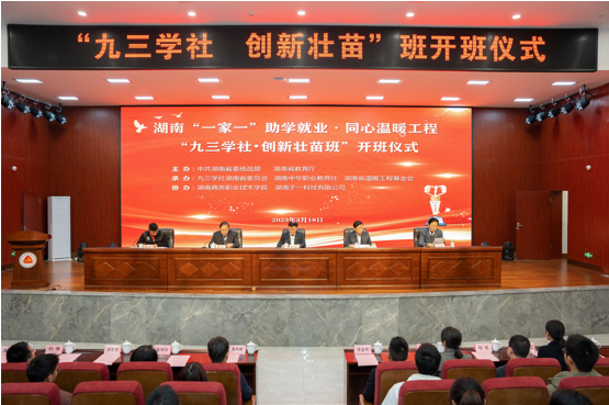 3月18日,湖南“一家一”助学就业•同心温暖工程“九三学社•创新壮苗班”开班式在湖南商务职业技术学院举行,优秀校友、湖南于一科技有限公司总经理阳纯正捐资20万元开办同心班,组织企业家导师参与和带动学员开展创业实践活动,为创业学子搭建圆梦舞台。会议由学院党委副书记、副院长廖志刚主持。