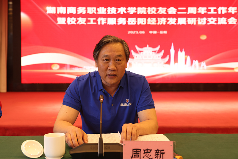 (通讯员 丁贤芳 李佳鑫)6月17日下午,湖南商务职业技术学院校友会两周年工作年会暨校友工作服务岳阳经济发展研讨交流会在岳阳市隆重举行。岳阳市人大常委会原主任、慈善总会会长陈志刚,湖南省供销合作总社原党组书记、理事会主任陈德礼出席会议。学院党委书记周忠新,原院长、校友会顾问郭清泉、孔军山,湖南异地商会联合会副秘书长、原院级领导王箕裘,副院长、校友会会长廖良林及长沙、广东、岳阳等地校友共80余人参加大会。