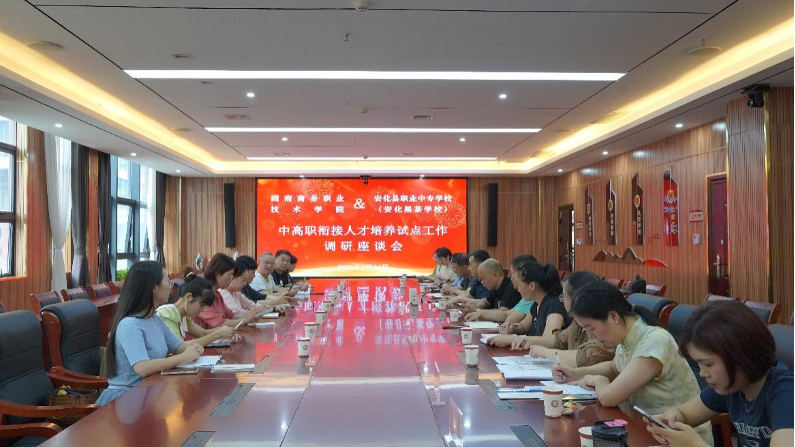 (通讯员 刘奥鑫 冯湘)7月14日,湖南商务职业技术学院李定珍院长带领茶学院易能院长及全体专业老师在安化县职业中专学校(安化黑茶学校)进行调研,并举行中高职衔接人才培养试点工作调研座谈会,共同探讨中高职衔接中存在的问题并寻求解决方案。