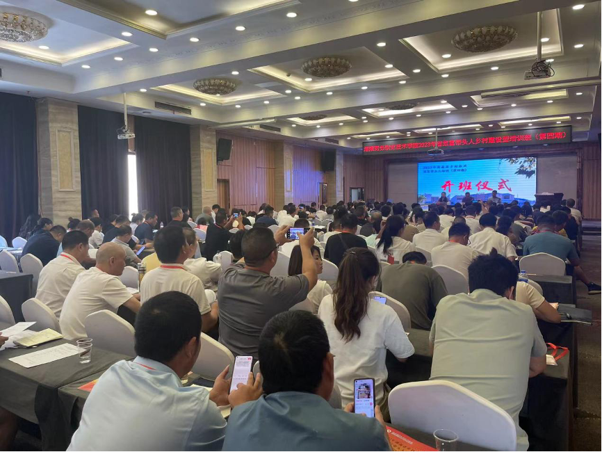 (通讯员:罗望阳 谷永林)7月25日,由湖南省乡村振兴局主办,湖南商务职业技术学院承办的“2023年湖南省致富带头人第四期培训班(乡村建设型)”在长沙正式开班。来自湖南省会同县、韶山市、蒸湘区、衡东县、衡南县、新宁县、洞口县等不同地区的150余名村干部、驻村工作队干部、企事业单位负责人等齐聚一堂,共同探讨、学习乡村振兴致富经。