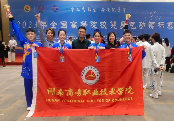 (通讯员 崔宏超)8月21日-26日,由国家体育总局健身气功管理中心、中国大学生体育协会联合主办的2023年全国高等院校健身气功锦标赛在天津举行。经过数天的激烈角逐,湖南商务职业技术学院代表队获得乙组集体赛八段锦一等奖、女子八段锦金牌、女子马王堆导引术金牌、男子导引养生功十二法铜牌、男子五禽戏第五名;罗敏获优秀教练员、胡星杰获评优秀运动员称号。