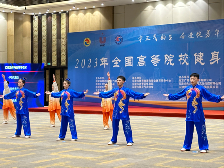 据悉,全国高等院校健身气功锦标赛由国家体育总局健身气功管理中心、中国大学生体育协会等五部门联合主办,有武汉大学、北京师范大学、北京体育大学等183所高等院校的940名运动员同台竞技,设集体和个人(男子、女子)两项,包括健身气功易筋经、五禽戏、六字诀、八段锦、马王堆导引术、大舞、导引养生功十二法、太极养生杖等比赛项目。