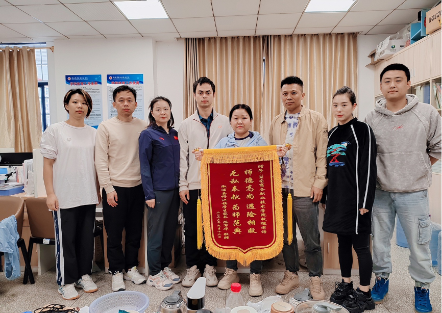 11月4日,湖南商务职业技术学院体育课部办公室收到了溆浦县水东镇村民陈女士送来的一面写着“师德高尚 遇险相救 无私奉献 为师典范”的鲜红锦旗。“在我儿子落水时,商务职院的老师们不顾个人安危合力将孩子救上岸并尽全力抢救,真的令人感动和钦佩”。陈女士通过当地派出所,经多方打听才得知当天勇救落水少年的正是湖南商务职业技术学院体育课部的老师们。