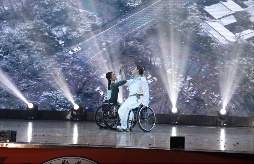 现场,40余名校友重返母校,以集体朗诵的方式,致敬母校,感恩老师,共忆青春年华。最为瞩目的当属91级校友尹红携手舞伴带来的轮椅舞蹈《最美的风景》,伴着悠扬的歌曲用轮椅划出优美的弧线,双眸自信有神,舞姿优美有力,传递出极致的生命韧劲,激励着每位同学有面对逆境的勇气。党委书记周忠新、院长李定珍为他们献上了花束并希望他们“常回来看看”。