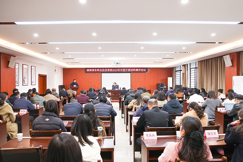 1月9日,学院2023年中层干部述职测评会议召开,全体院领导、中层干部参加会议,会议由党委副书记廖志刚主持。
