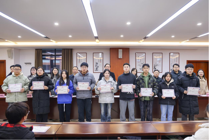 1月18日,23级市场营销(楚怡)班新生奖学金颁奖仪式暨座谈会在崇理楼109会议室举行,党委书记周忠新出席颁奖仪式并致辞,现场为31位品学兼优的同学颁发奖学金证书。