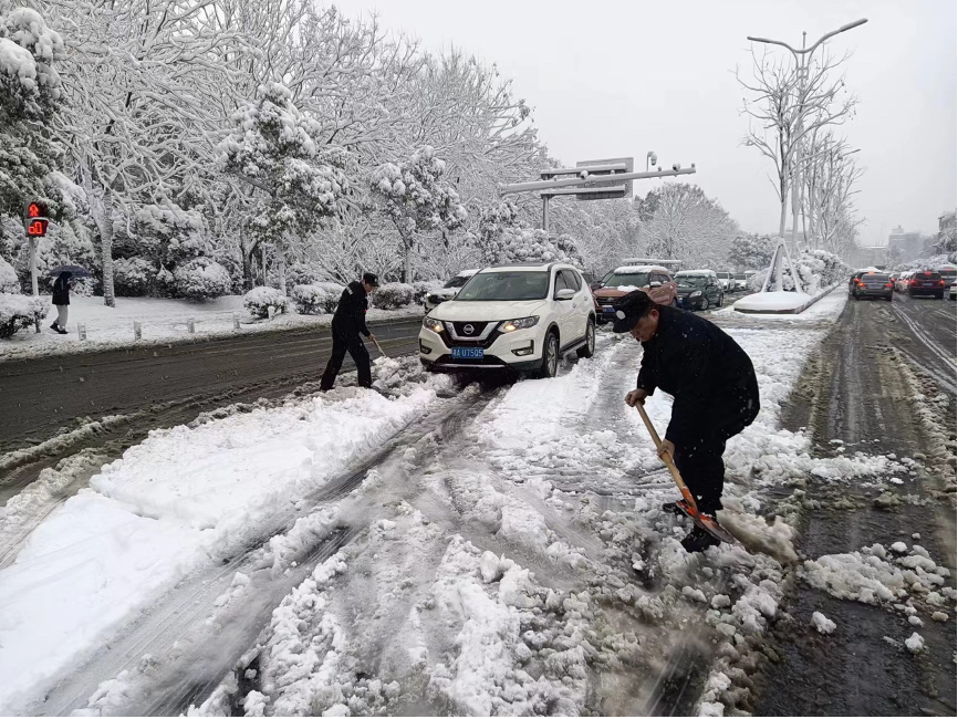 争当校园守护者 90余名后勤工人全力开展清雪行动