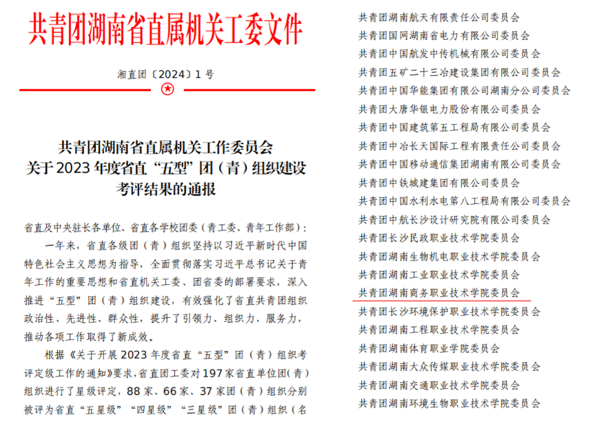 连续四年!湖南商务职院团委获评2023年度省直“五型”团(青)组织建设五星级团组织