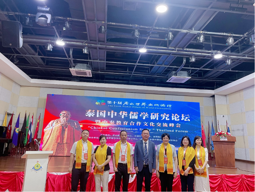 2024年4月28-4月30日,由泰国中国东盟国际教育协会、泰国格乐大学、泰国南邦国际技术学院、新加坡南洋管理学院、泰国-中国国际学校联合主办的第十届尼山世界文明论坛泰国中华儒学研究论坛暨中泰教育合作文化交流峰会在泰国曼谷隆重举行。湖南商务职业技术学院院长李定珍受邀率领出访团参加大会,同向先师孔子铜像敬献鲜花,并访问泰国格乐大学和泰国-中国国际学校,与泰国格乐大学签署国际教育交流战略合作协议。